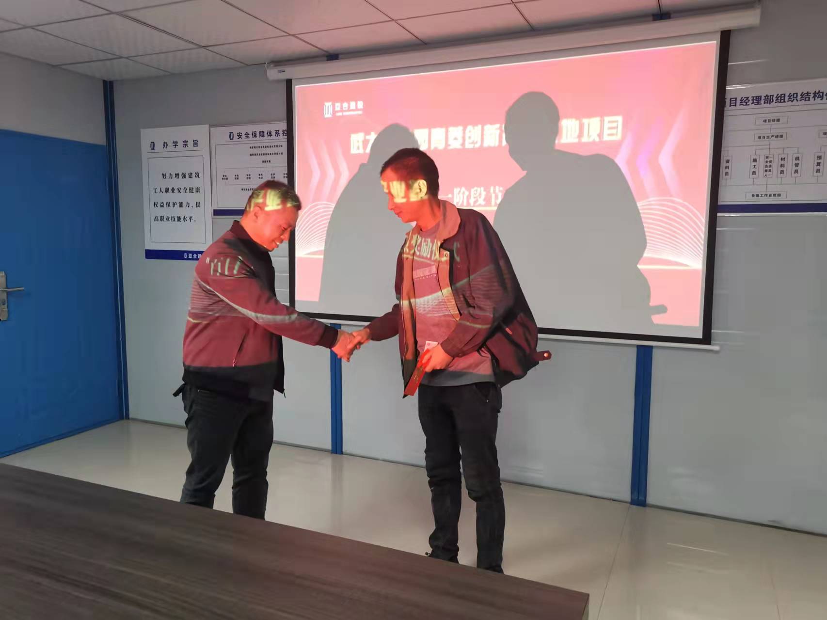 2021年11月12日下午,亞合建設在武大科技園青菱創新產業基地項目部組織召開“百日大戰”一階段節點獎勵儀式,亞合建設總經理羅奇志、工程副總楊明富、安環經理韓衛、行政經理石洋、青菱項目部項目經理、項目管理人員、勞務班組、施工員等三十余人參加了此次活動。