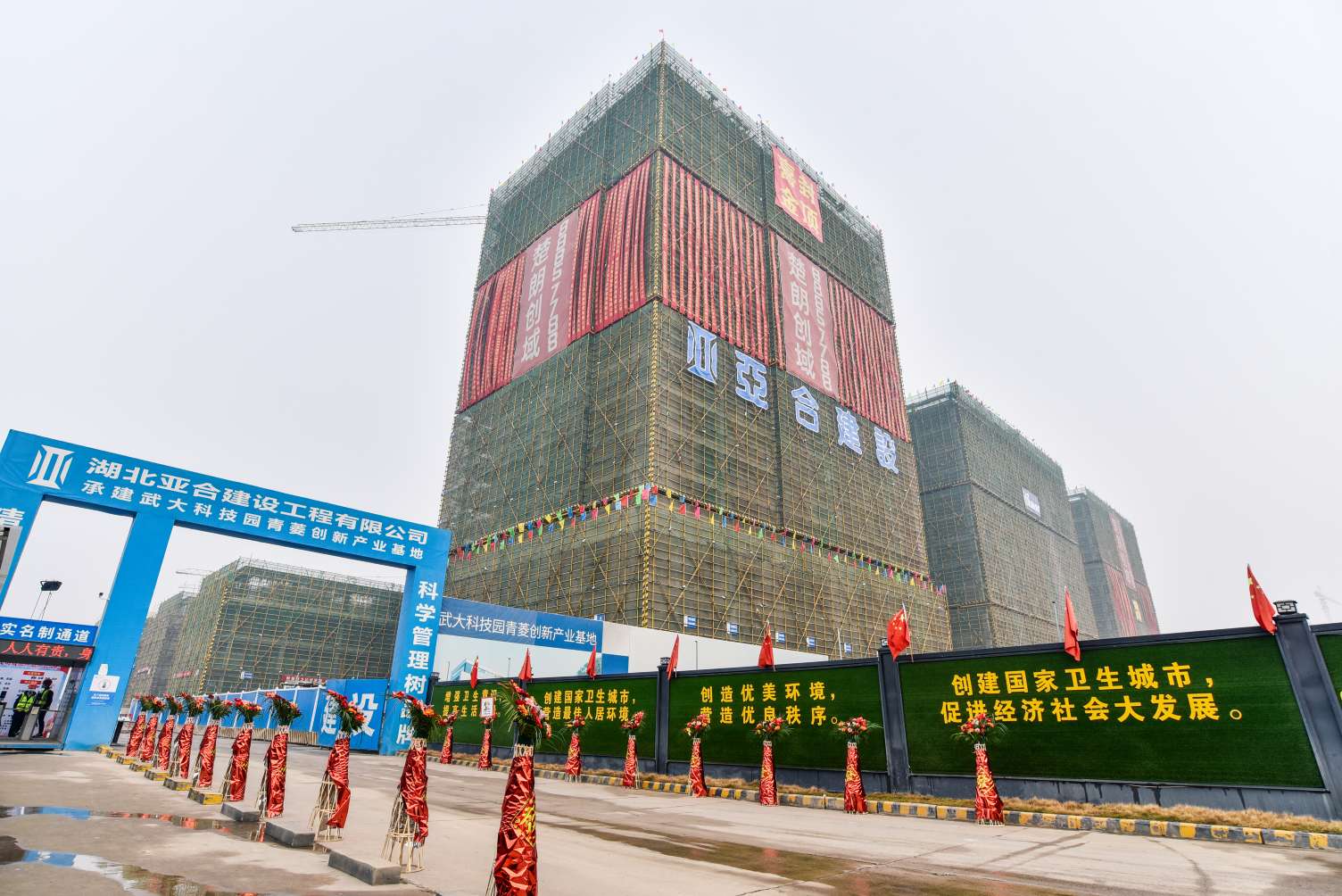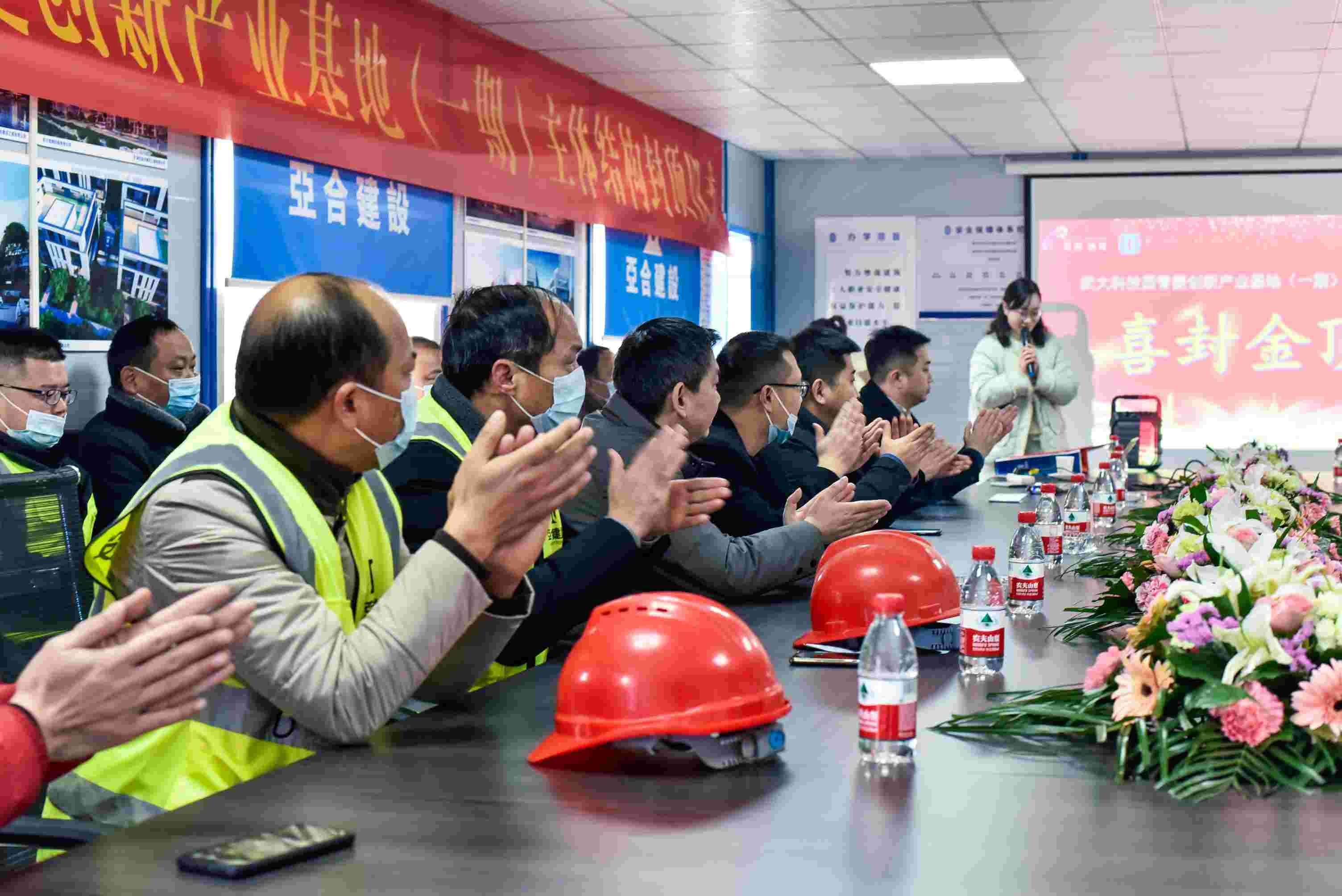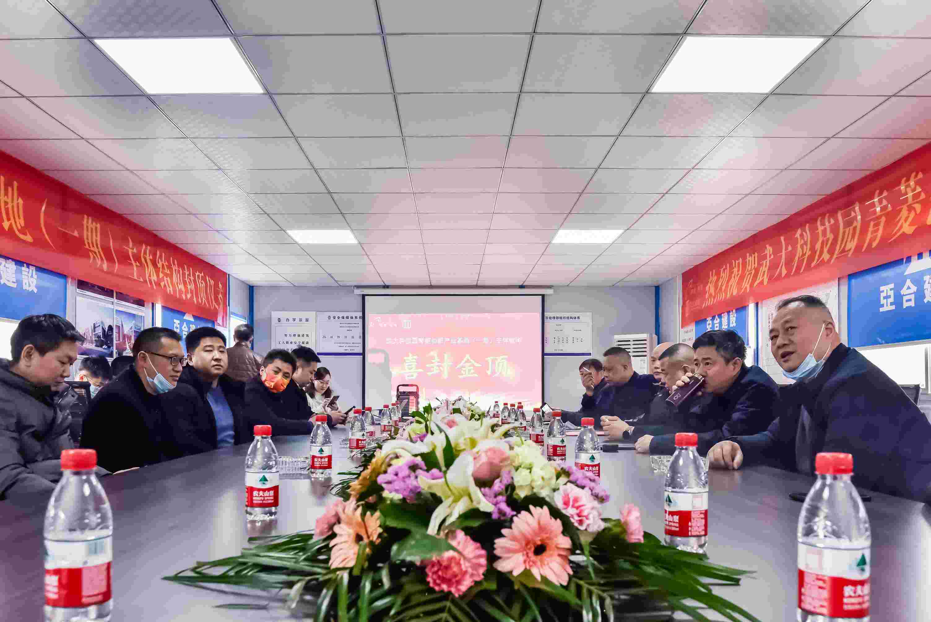 2022年1月20日上午,武大科技園青菱創(chuàng)新產(chǎn)業(yè)基地項(xiàng)目迎來(lái)了極具特殊意義的時(shí)刻,隆重慶祝項(xiàng)目(一期) 主體結(jié)構(gòu)喜封金頂!這標(biāo)志著青菱產(chǎn)業(yè)園建設(shè)工程取得了重要的階段性勝利,為保證后續(xù)施工的順利實(shí)現(xiàn)奠定了堅(jiān)實(shí)的基礎(chǔ)。施工總承包單位亞合建設(shè)董事長(zhǎng)李衛(wèi)亞、總經(jīng)理羅奇志攜公司部門及項(xiàng)目管理人員與建設(shè)單位楚朗控股、監(jiān)理單位博成建設(shè)、參建單位等相關(guān)負(fù)責(zé)人齊聚現(xiàn)場(chǎng)共同見(jiàn)證這一榮耀時(shí)刻。